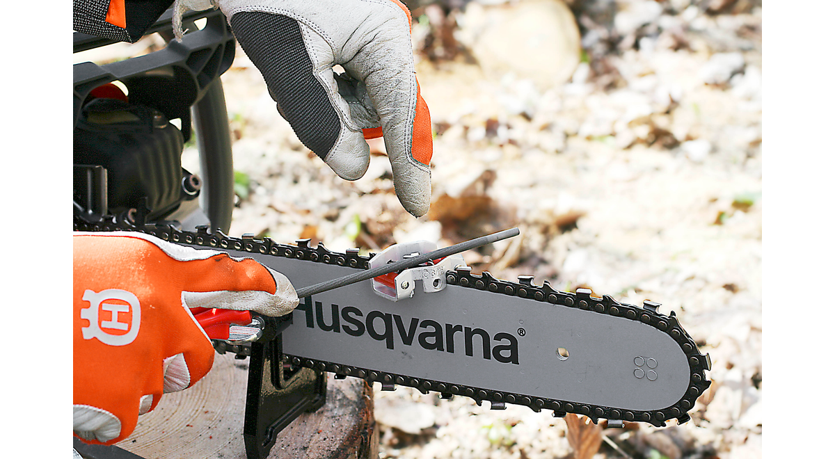 Specialkonstruerade filmallar för rätt filningsvinkel. Finns till Husqvarnas sågkedjor.