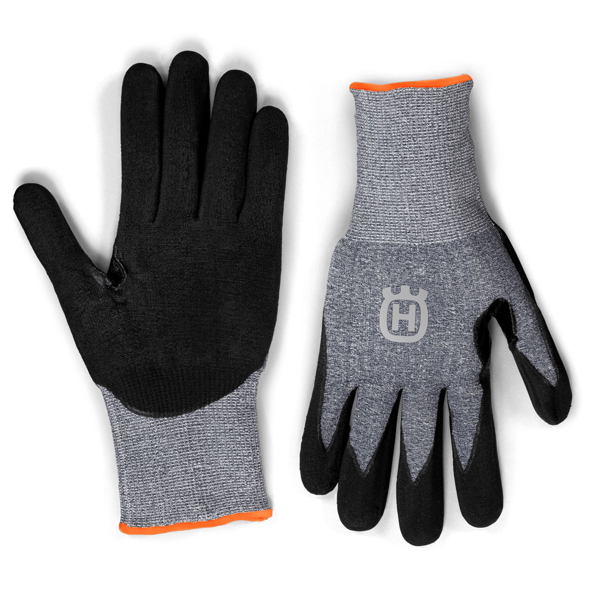 Bekvämt åtsittande skyddshandskar utformade för allt slags trädgårdsarbete och trädvård i varmt väder. Denna arbetshandske ger god känslighet och passar perfekt för klättring. Handflata med hållbar nitrilbeläggning ger utmärkt grepp i oljiga eller våta förhållanden. Den elastiska, ventilerande handryggen ger en bekväm passform. Stickad mudd håller smutsen borta och gör handsken enkel att ta på. Med pekskärmsvänliga fingrarna kan telefonen användas med handskar på. Kan handtvättas. Uppfyller EN 388:2016. Storlek 7, 8, 9, 10 och 12.