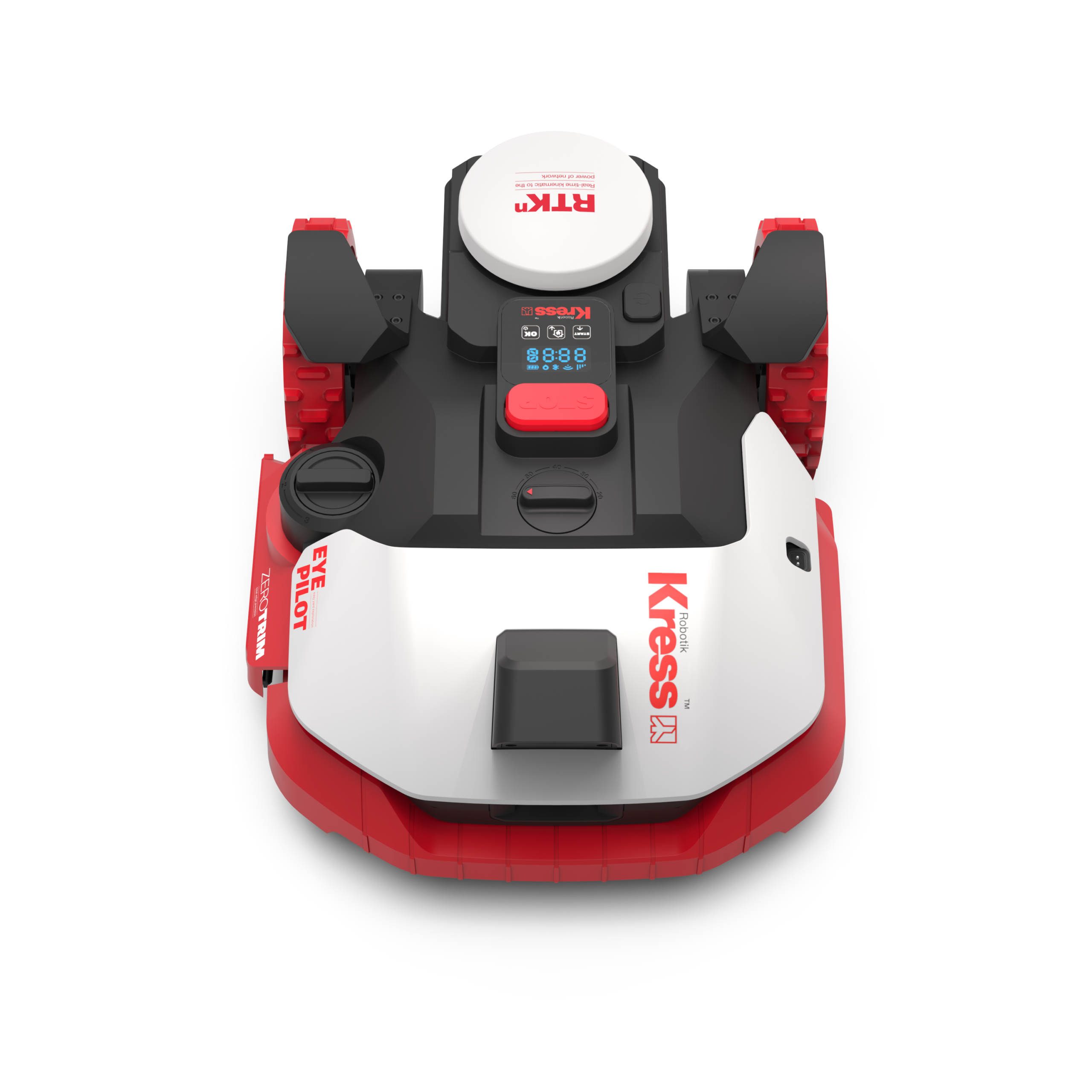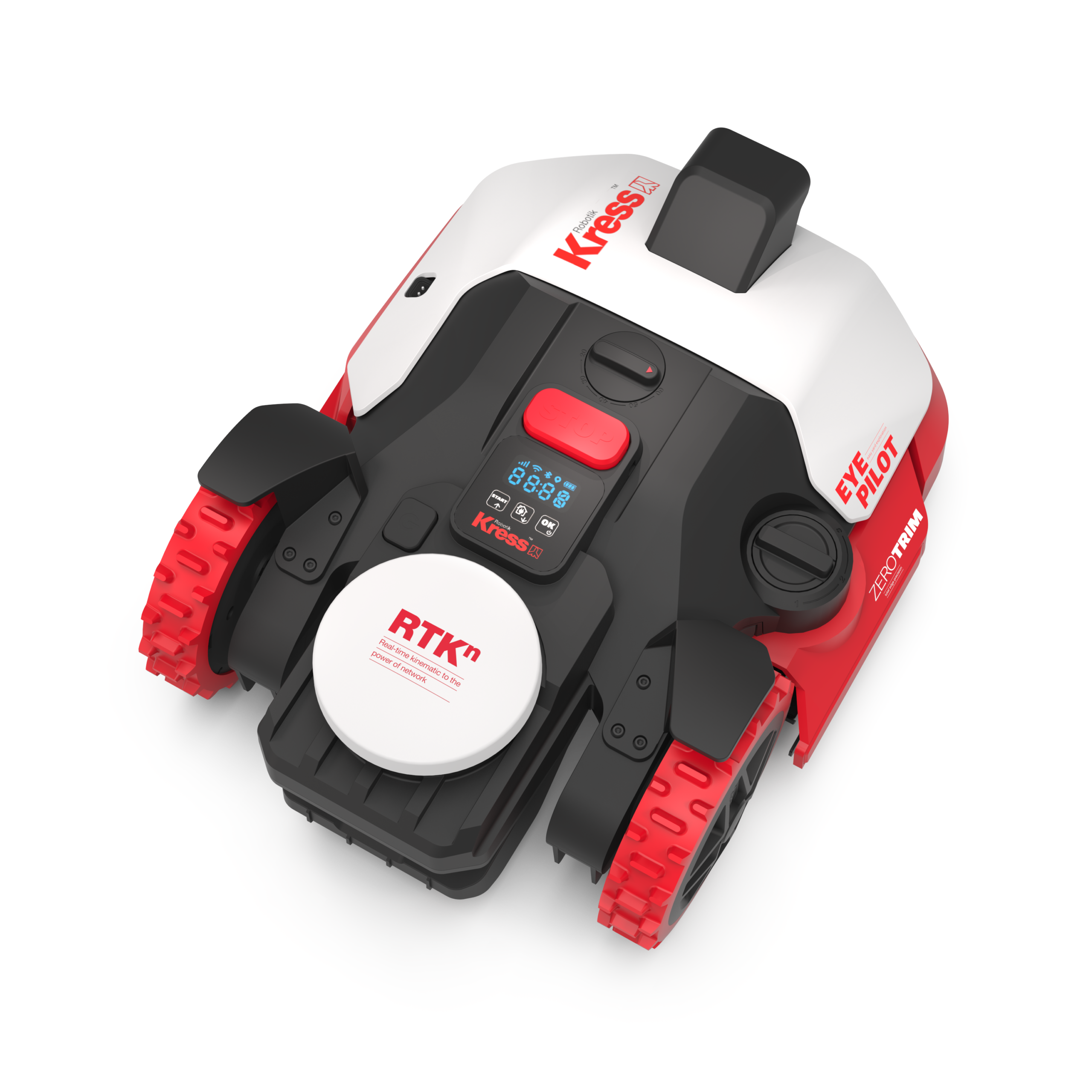 Kress robotgräsklippare för lite större trädgårdar (upp till 5000m2). Utrustad med RTK-navigering och EyePilot® AI-vision som gör installationen helt kabelfri. Navigerar smidigt under träd och hinder där andra tappar signalen.
