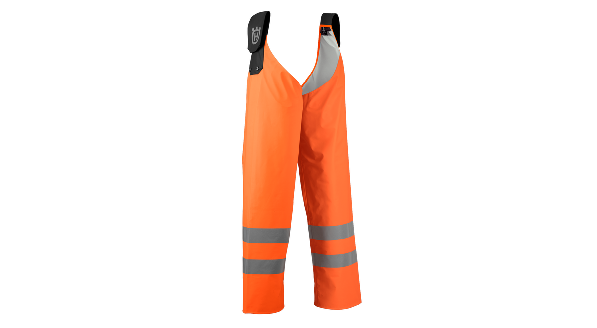 Regnbyxholkar tillverkade av polyestertrikå med en hållbar ensidig PU-beläggning med svetsade sömmar – ett starkt men ändå lätt och ljudlöst material. Designade för att fästas på ett bälte eller verktygsbälte. Godkända enligt EN ISO 20471 klass 1 och EN 343. En storlek.