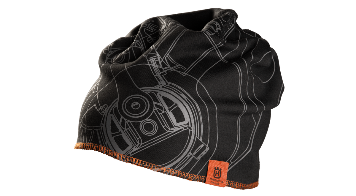 En svart mössa med ett snyggt tryck som visar vår pioneersåg framtill. Den är gjord av andningsbart Coolmax Air-material.